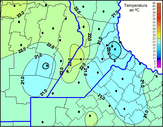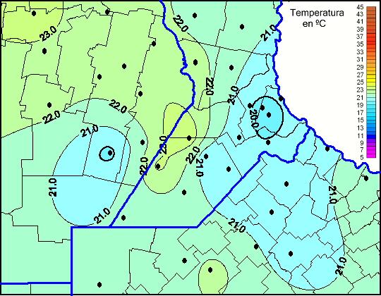 Mapa de temperaturas máximas de las las últimas 72 horas.(Desde las 8:00AM hasta las 8:00AM). Se actualiza a las 10:00hs.