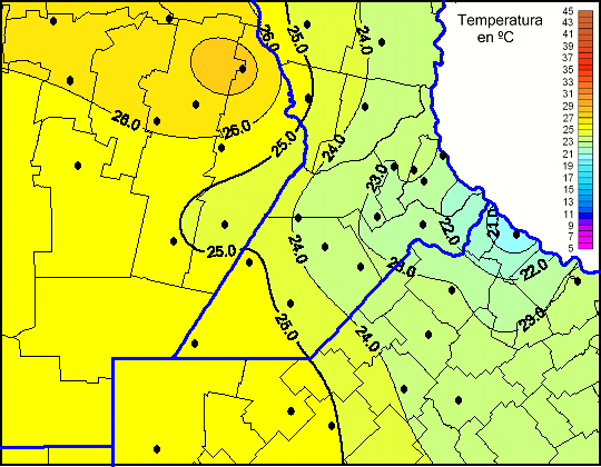 Mapa de temperaturas máximas de las las últimas 24 horas.