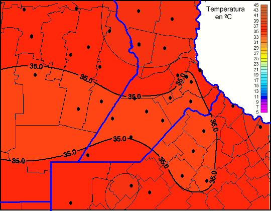 Mapa de temperaturas máximas de las las últimas 96 horas.(Desde las 8:00AM hasta las 8:00AM). Se actualiza a las 10:00hs.