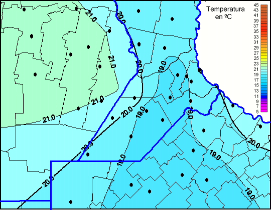 Mapa de temperaturas máximas de las las últimas 72 horas.(Desde las 8:00AM hasta las 8:00AM). Se actualiza a las 10:00hs.