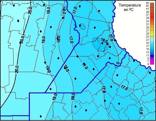 Mapa de temperaturas máximas de las las últimas 96 horas.(Desde las 8:00AM hasta las 8:00AM). Se actualiza a las 10:00hs.