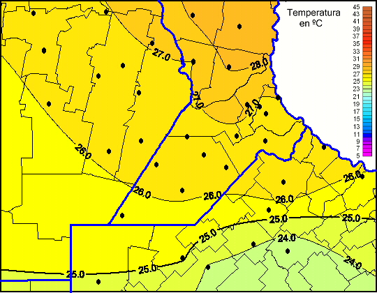 Mapa de temperaturas máximas de las las últimas 24 horas.