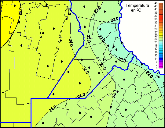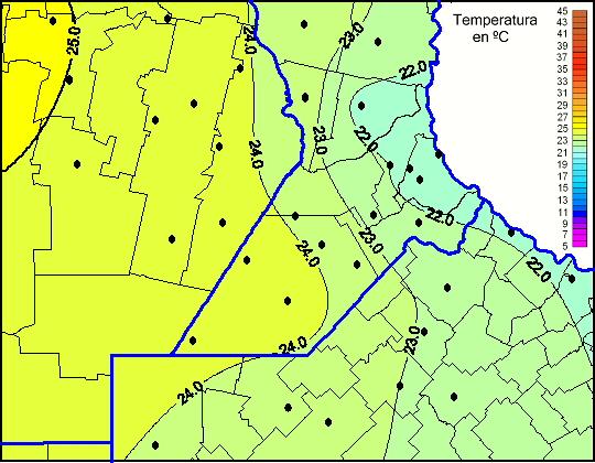 Mapa de temperaturas máximas de las las últimas 72 horas.(Desde las 8:00AM hasta las 8:00AM). Se actualiza a las 10:00hs.