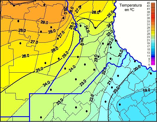 Mapa de temperaturas máximas de las las últimas 24 horas.
