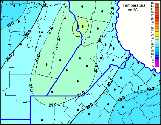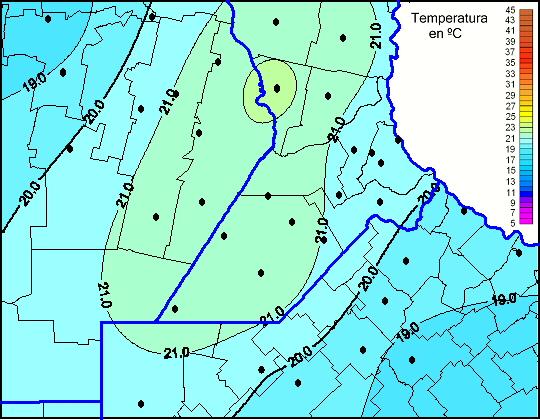 Mapa de temperaturas máximas de las las últimas 96 horas.(Desde las 8:00AM hasta las 8:00AM). Se actualiza a las 10:00hs.