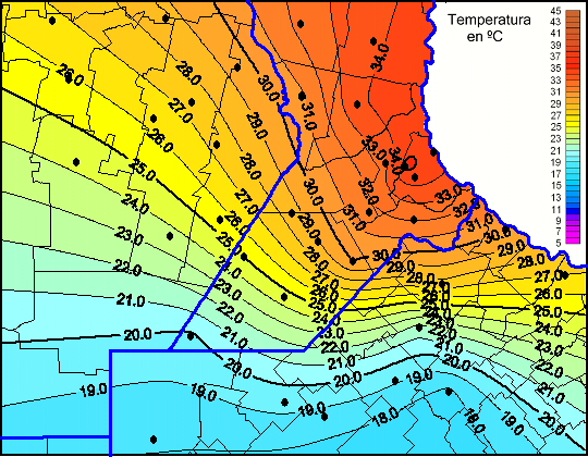 Mapa de temperaturas máximas de las las últimas 24 horas.