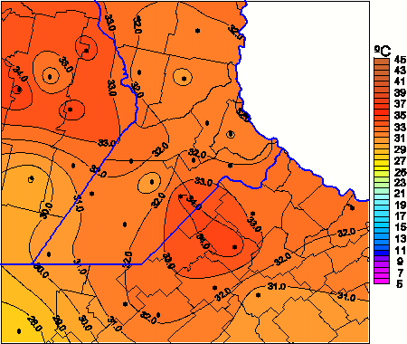 Mapa de temperaturas máximas de las las últimas 24 horas.