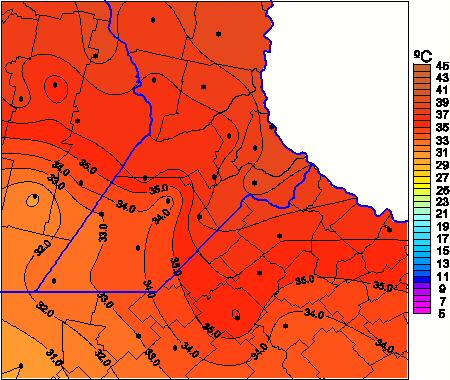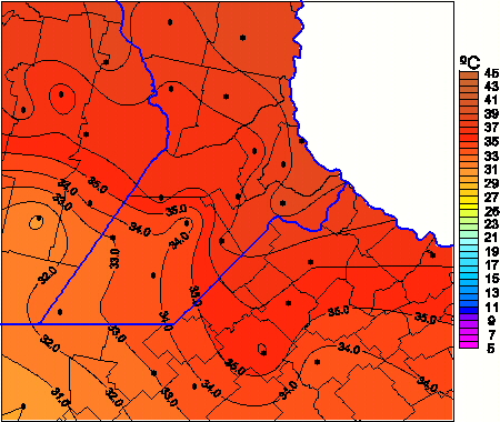Mapa de temperaturas máximas de las las últimas 96 horas.