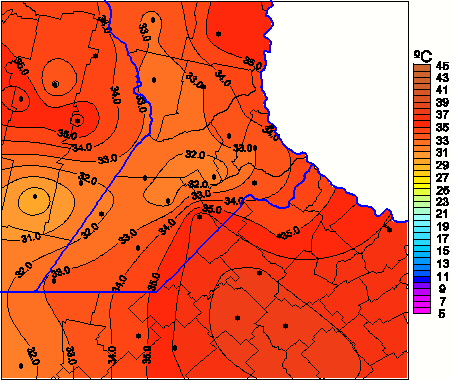 Mapa de temperaturas máximas de las las últimas 24 horas.