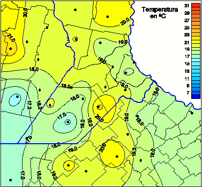 Mapa de temperaturas máximas de las las últimas 72 horas.(Desde las 8:00AM hasta las 8:00AM). Se actualiza a las 10:00hs.