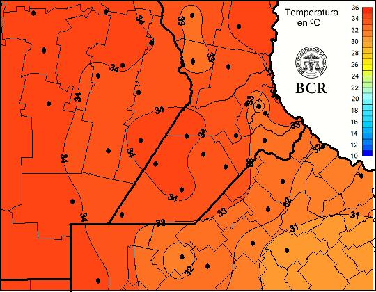 Mapa de temperaturas máximas de las las últimas 24 horas.