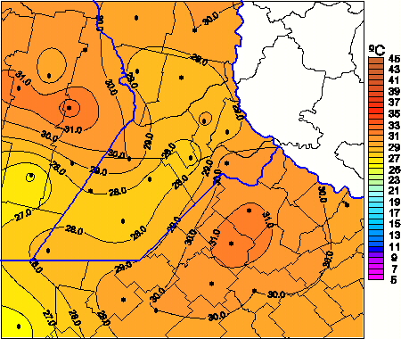 Mapa de temperaturas máximas de las las últimas 72 horas.(Desde las 8:00AM hasta las 8:00AM). Se actualiza a las 10:00hs.