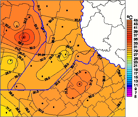 Mapa de temperaturas máximas de las las últimas 24 horas.