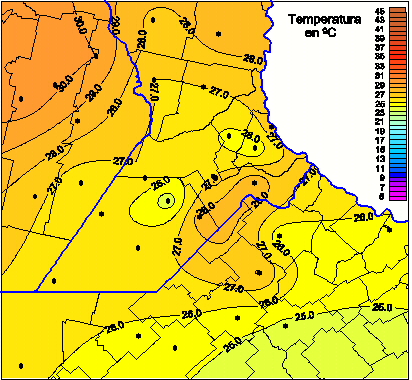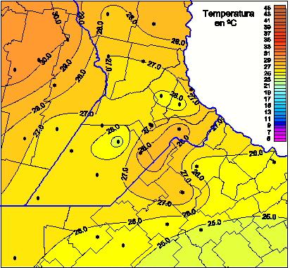Mapa de temperaturas máximas de las las últimas 24 horas.