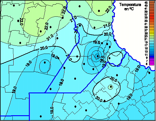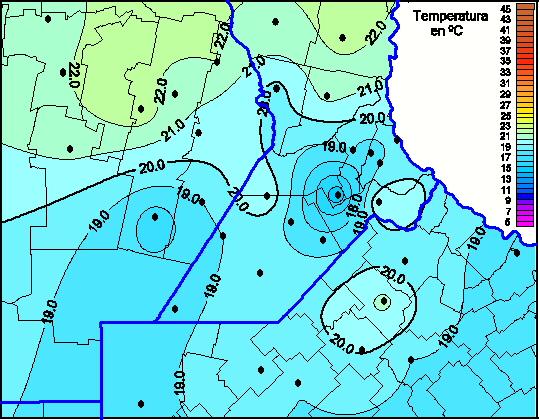 Mapa de temperaturas máximas de las las últimas 96 horas.(Desde las 8:00AM hasta las 8:00AM). Se actualiza a las 10:00hs.