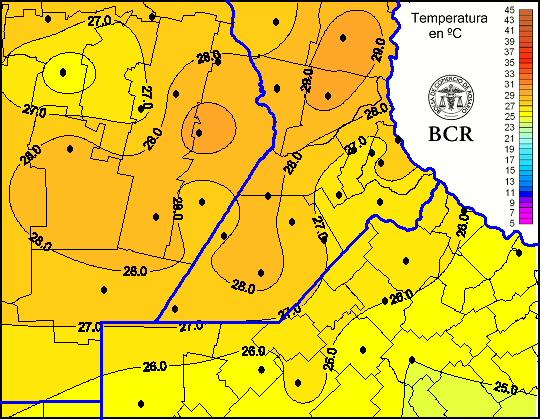 Mapa de temperaturas máximas de las las últimas 24 horas.