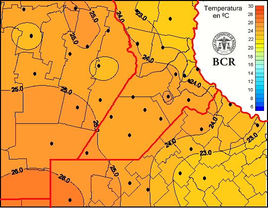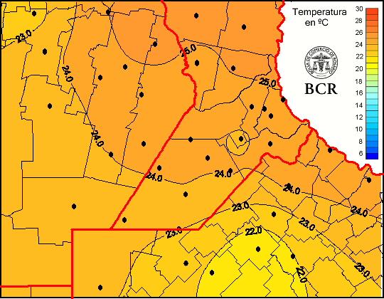Mapa de temperaturas medias de las las últimas 24 horas.