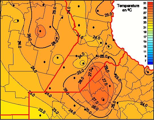 Mapa de temperaturas medias de las las últimas 96 horas.(Desde las 8:00AM hasta las 8:00AM). Se actualiza a las 10:00hs.