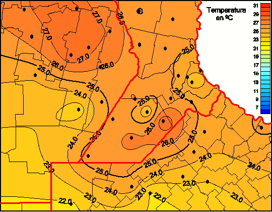 Mapa de temperaturas medias de las las últimas 72 horas.(Desde las 8:00AM hasta las 8:00AM). Se actualiza a las 10:00hs.