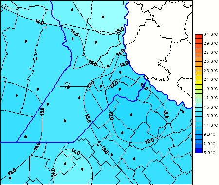 Mapa de temperaturas medias de las las últimas 72 horas.(Desde las 8:00AM hasta las 8:00AM). Se actualiza a las 10:00hs.