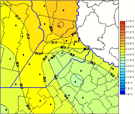 Mapa de temperaturas medias de las las últimas 72 horas.
