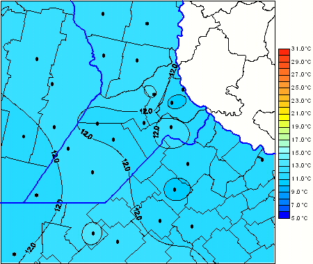 Mapa de temperaturas medias de las las últimas 72 horas.(Desde las 8:00AM hasta las 8:00AM). Se actualiza a las 10:00hs.