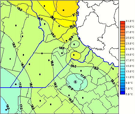 Mapa de temperaturas medias de las las últimas 48 horas.(Desde las 8:00AM hasta las 8:00AM). Se actualiza a las 10:00hs.