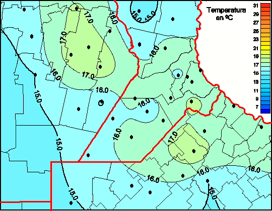 Mapa de temperaturas medias de las las últimas 96 horas.(Desde las 8:00AM hasta las 8:00AM). Se actualiza a las 10:00hs.