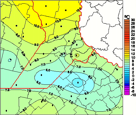 Mapa de temperaturas medias de las las últimas 72 horas.(Desde las 8:00AM hasta las 8:00AM). Se actualiza a las 10:00hs.