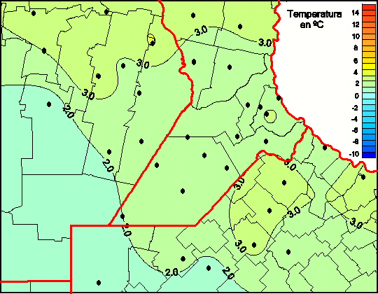 Mapa de temperaturas medias de las las últimas 0 horas.(Desde las 8:00AM hasta las 8:00AM). Se actualiza a las 10:00hs.