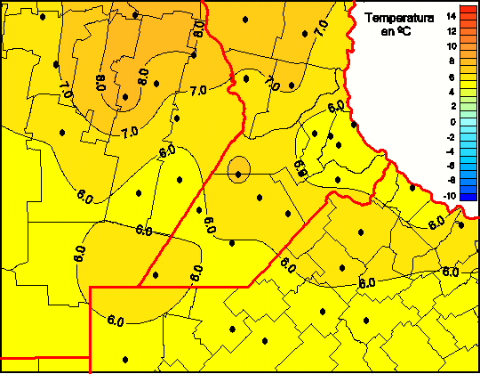 Mapa de temperaturas medias de las las últimas 72 horas.