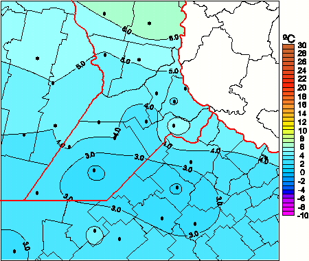 Mapa de temperaturas medias de las las últimas 96 horas.(Desde las 8:00AM hasta las 8:00AM). Se actualiza a las 10:00hs.