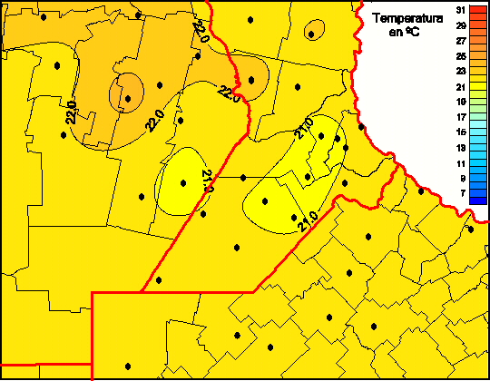 Mapa de temperaturas medias de las las últimas 72 horas.(Desde las 8:00AM hasta las 8:00AM). Se actualiza a las 10:00hs.