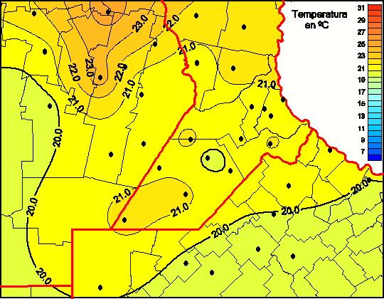 Mapa de temperaturas medias de las las últimas 96 horas.(Desde las 8:00AM hasta las 8:00AM). Se actualiza a las 10:00hs.