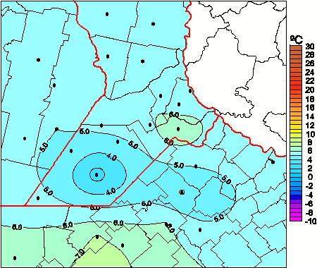 Mapa de temperaturas medias de las las últimas 0 horas.(Desde las 8:00AM hasta las 8:00AM). Se actualiza a las 10:00hs.