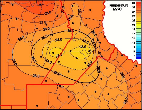 Mapa de temperaturas medias de las las últimas 48 horas.(Desde las 8:00AM hasta las 8:00AM). Se actualiza a las 10:00hs.
