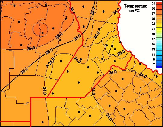 Mapa de temperaturas medias de las las últimas 72 horas.(Desde las 8:00AM hasta las 8:00AM). Se actualiza a las 10:00hs.