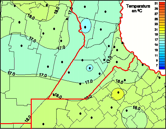 Mapa de temperaturas medias de las las últimas 48 horas.(Desde las 8:00AM hasta las 8:00AM). Se actualiza a las 10:00hs.
