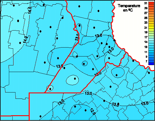 Mapa de temperaturas medias de las las últimas 0 horas.(Desde las 8:00AM hasta las 8:00AM). Se actualiza a las 10:00hs.