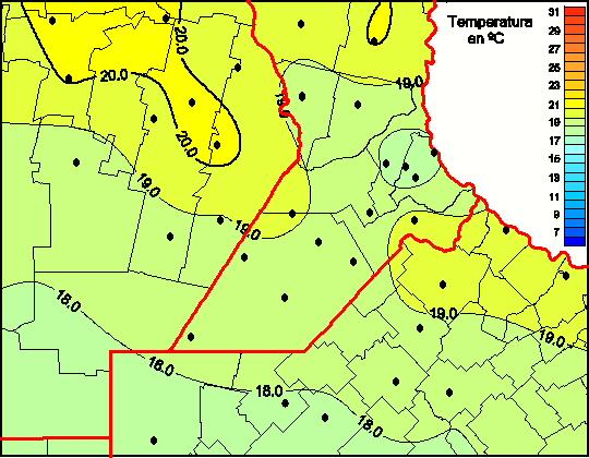 Mapa de temperaturas medias de las las últimas 48 horas.(Desde las 8:00AM hasta las 8:00AM). Se actualiza a las 10:00hs.