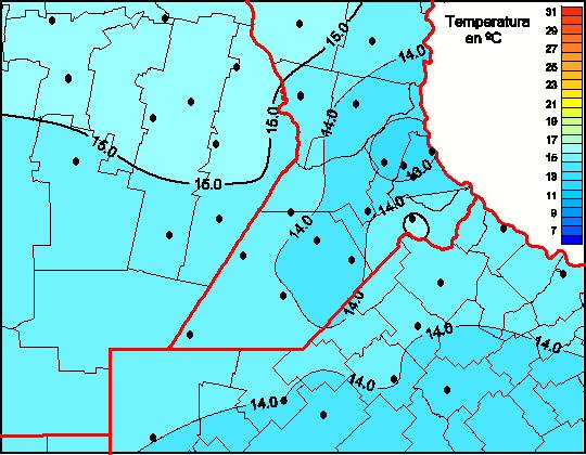 Mapa de temperaturas medias de las las últimas 72 horas.(Desde las 8:00AM hasta las 8:00AM). Se actualiza a las 10:00hs.
