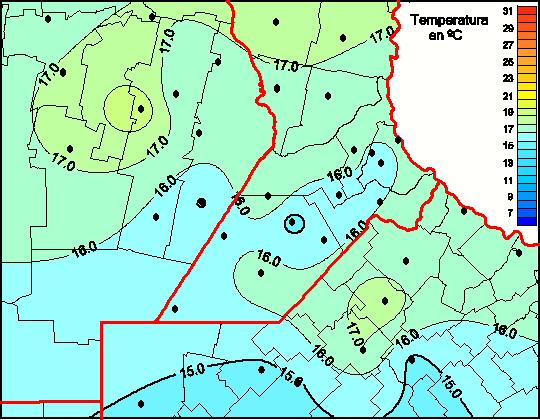 Mapa de temperaturas medias de las las últimas 72 horas.(Desde las 8:00AM hasta las 8:00AM). Se actualiza a las 10:00hs.