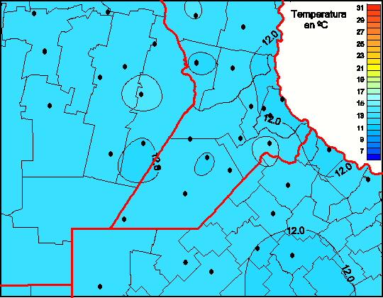 Mapa de temperaturas medias de las las últimas 72 horas.