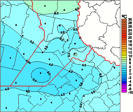 Mapa de temperaturas medias de las las últimas 72 horas.(Desde las 8:00AM hasta las 8:00AM). Se actualiza a las 10:00hs.