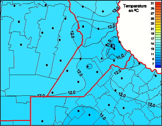 Mapa de temperaturas medias de las las últimas 72 horas.(Desde las 8:00AM hasta las 8:00AM). Se actualiza a las 10:00hs.