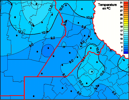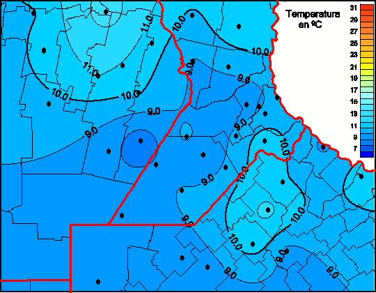 Mapa de temperaturas medias de las las últimas 72 horas.(Desde las 8:00AM hasta las 8:00AM). Se actualiza a las 10:00hs.