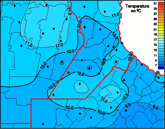 Mapa de temperaturas medias de las las últimas 48 horas.(Desde las 8:00AM hasta las 8:00AM). Se actualiza a las 10:00hs.