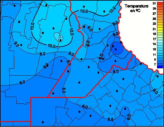 Mapa de temperaturas medias de las las últimas 72 horas.