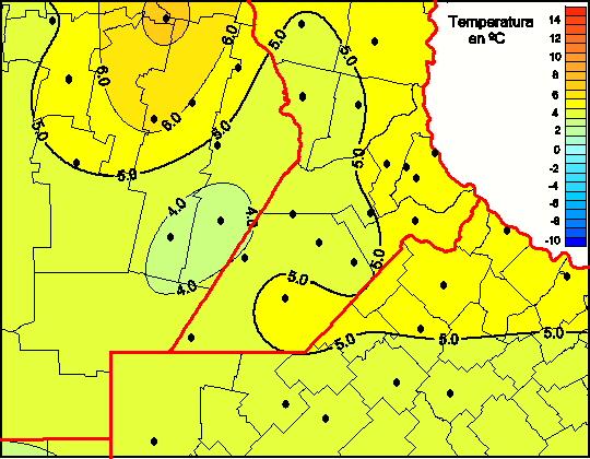Mapa de temperaturas medias de las las últimas 72 horas.(Desde las 8:00AM hasta las 8:00AM). Se actualiza a las 10:00hs.