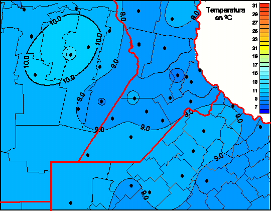 Mapa de temperaturas medias de las las últimas 72 horas.(Desde las 8:00AM hasta las 8:00AM). Se actualiza a las 10:00hs.